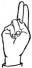 На ћирилици написано ПЕТАК ВИДАКОВИЋ састоји се из 14 слова [?]. Исписано ћириличном једноручном азбуком за глувонеме:
